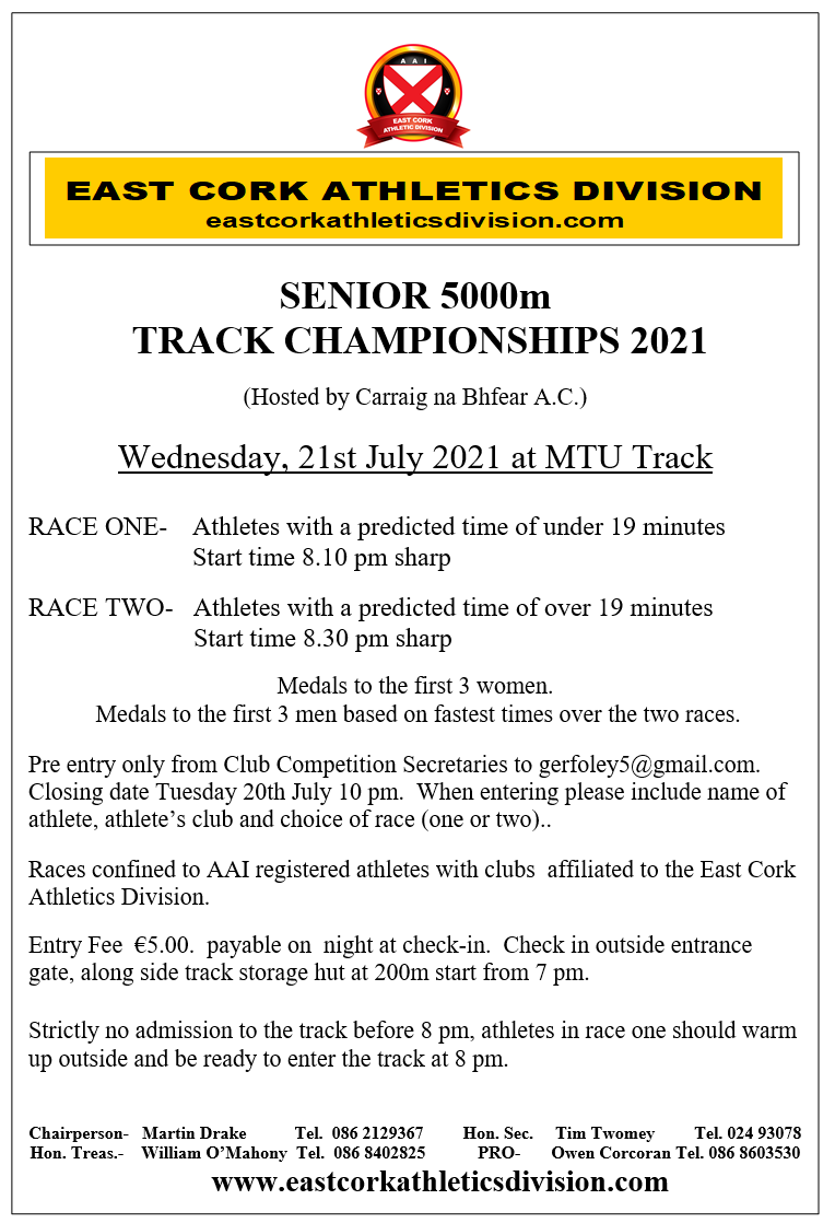 Hope to see you all at the County Cork Championships, which are being held in Riverstick on the 26th.