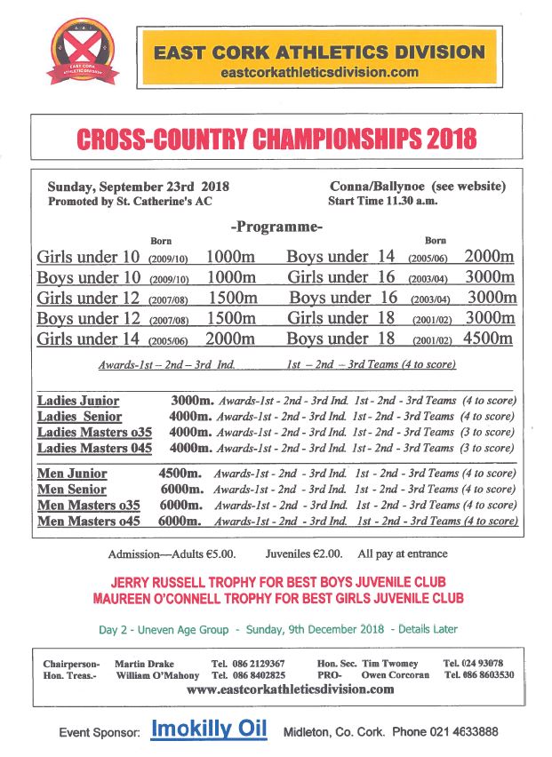 Entries for Juvenile athletes wishing to take part in the Cork Athletics Juvenile T&F County Championships need to be submitted this week. Please text Frank Hayes (0876192070) by Thursday night 26th April with the athletes name and chosen events.